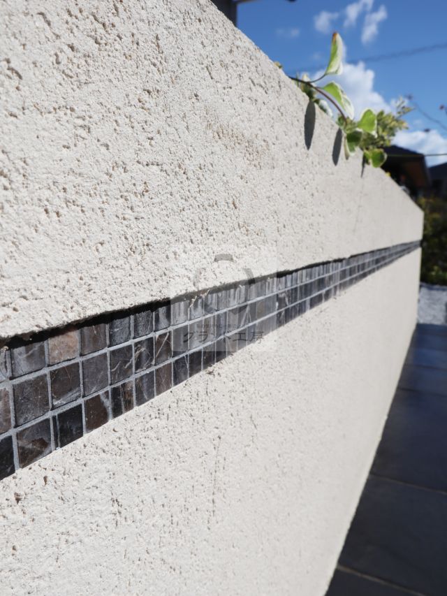 住んで1年。T字路の突き当りに敷地があり、道路からの目線が気になるため、クローズ外構へとリフォームしました。一部、前庭を門周りスペースとし、照明付きの表札・ポスト・インターホンを取り付けています。アクセントにタイルを張り、照明が当たるとタイルの凹凸が陰影をだしてくれます。壁の高さを出したことにより、庭に出ても視線を気にすることなく寛げるようになりました。シャッターゲート・電気錠門扉はお知り合いの方に頼まれています。