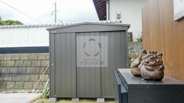 物置のご計画でご依頼頂きました。 道理側に面したスペースにご計画されていたのでデザイン性に優れた物置ということでマツモト物置で工事を行いました。 横幅2.2m奥行1.4mあり収納力も抜群です。 素材がスチール製なので、重厚感があり安心出来ます。 デザイン性に優れた三角屋根は見栄えもバッチリです!!