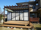 既存木製デッキが腐ってきたので新しくしたいとのことで、ローメンテナンスの木樹脂製のデッキをご提案...