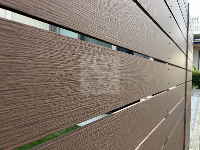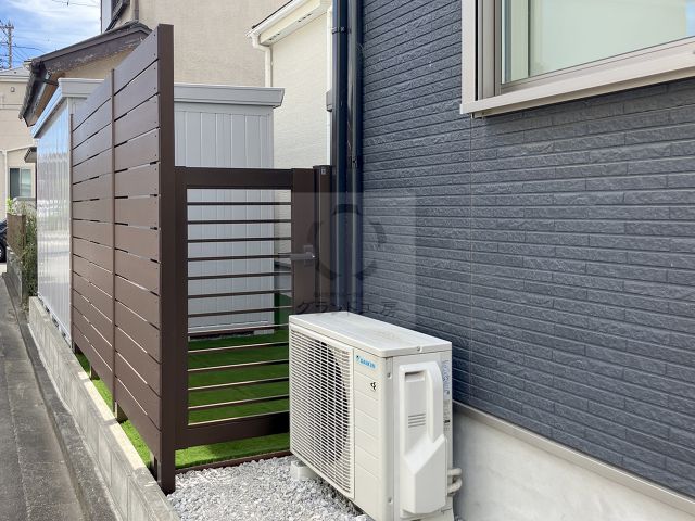 「ワンちゃんが安心して遊べる庭にしたい」というご要望から、お庭全体をリフォームしました。設置したのは2025年発売の新商品「マイティウッドフェンス ベーシック極(H1800)」。本物の木のような質感で高級感がありながらコストパフォーマンスも良く、しっかりと目隠しを叶えてくれます。足元には柔らかく心地よい人工芝を敷き、メンテナンスも簡単で一年中美しいグリーンを楽しめます。さらに出入口にはYKK シンプレオ門扉を設け、飛び出し防止と安心の出入りを実現。お庭全体がまるでプライベートドッグランのような、ワンちゃんにも人にも快適な空間へと生まれ変わりました。